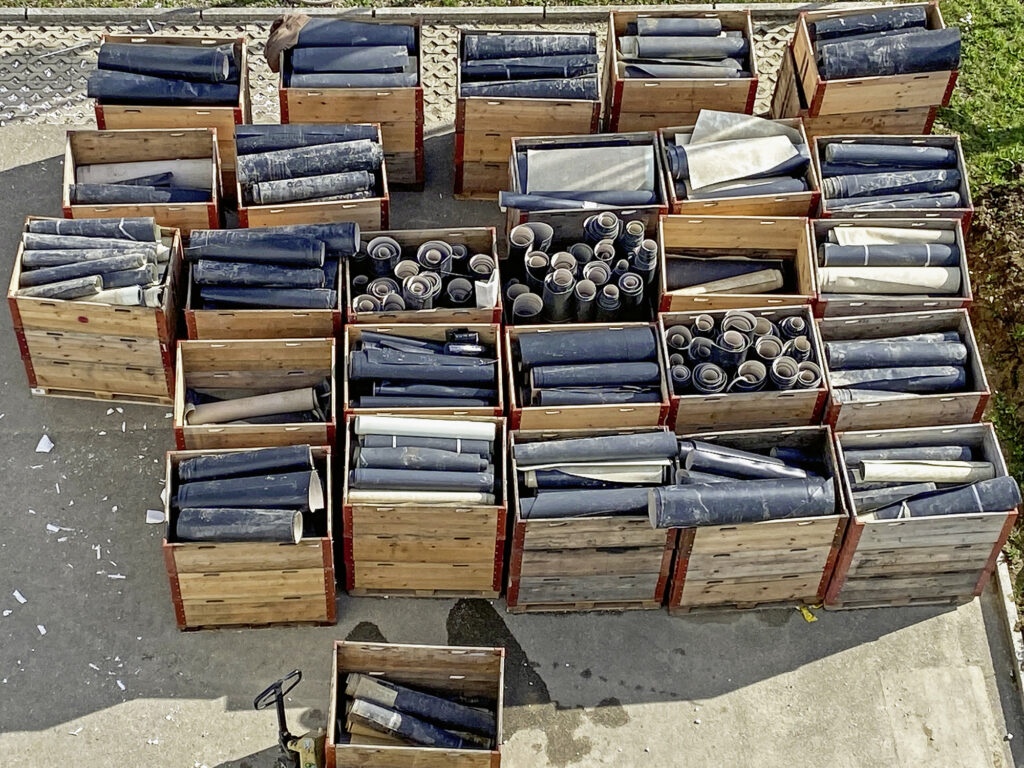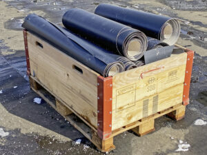 Materialien aus dem Rückbau von Dachbahnen werden sortenrein gesammelt, in Transportbehältern bereitgestellt und durch Sika abgeholt.