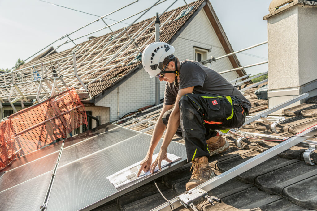 Bevor die Arbeiten der neuen Aufdachanlage weitergeführt werden können, studiert Daniel Sommer den Plan.