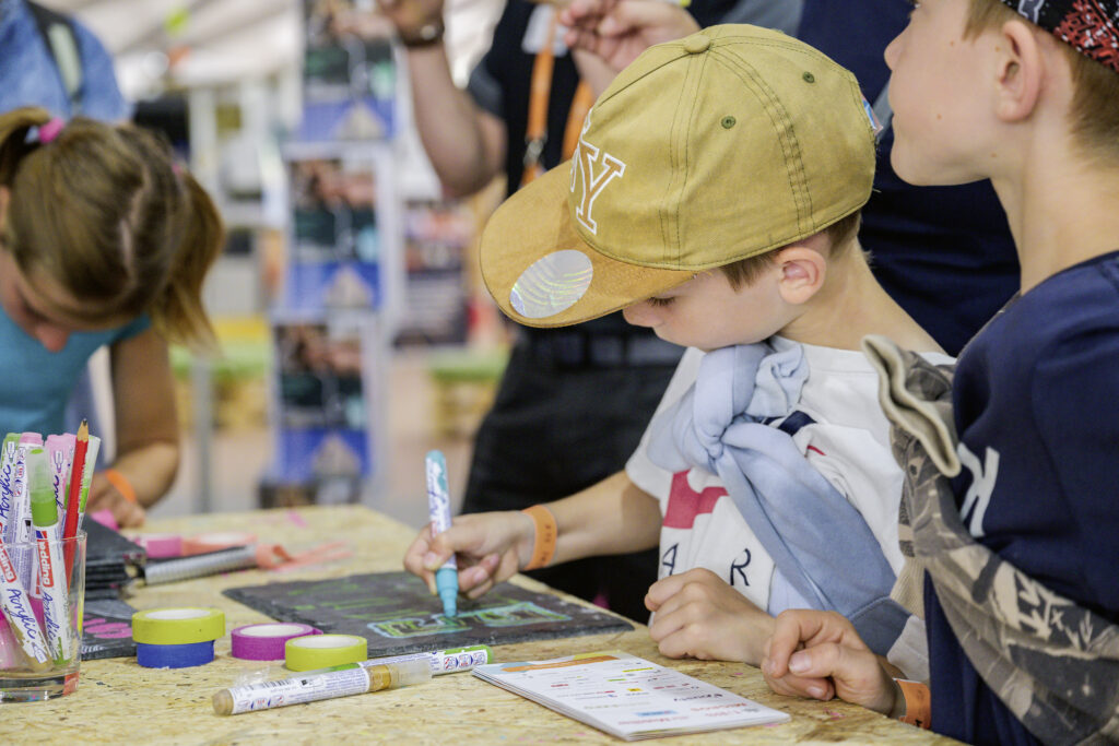 «Try a Skill» – selbst die jüngsten Besucher zeigten sich interessiert. Die Schieferplatten wurden in voller Konzentration bunt bemalt und beschriftet.