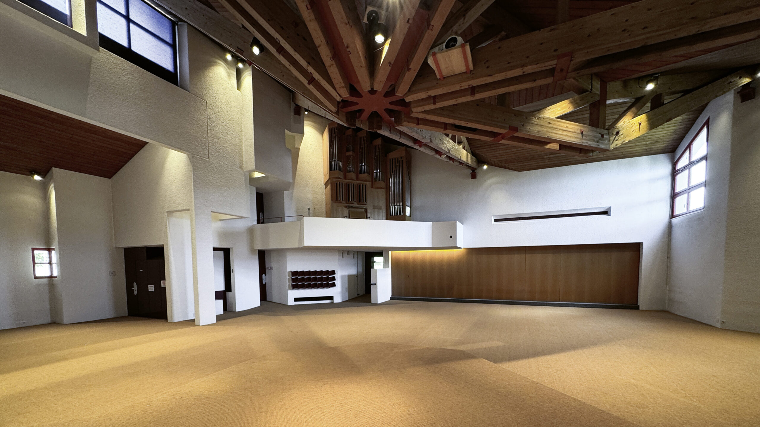 Der Ersatz des Daches war unausweichlich. Während Faserzementplatten die klassische, kostengünstige Lösung darstellte, fungierte eine Indach-Photovoltaik-Anlage als multifunktionale Gebäudehülle, die gleichzeitig Energie erzeugt. Diese soll nicht nur jedem Wetter standhalten – sie soll auch Strom produzieren. Dank der grossen Dachfläche – rund 1 000 Quadratmeter – hat die Indach-Anlage eine Leistung von 140 Kilowattpeak. Wie genau der Strom genutzt wird, wird derzeit noch abgeklärt. Denn einerseits braucht die Kirchgemeinde selbst wenig Strom, insbesondere in den Sommerferien, wenn die Stromproduktion auf Hochtouren läuft. Andererseits sind die Einspeisetarife nicht vorteilhaft. «Wir überlegen uns deshalb, eine lokale Elektrizitätsgemeinschaft (LEG) zu gründen», sagt Christian Breitenmoser, Präsident des Kirchenverwaltungsrats. Mit einer LEG ist es ab Januar 2026 offiziell möglich, den Strom innerhalb derselben Gemeinde und im Bereich desselben Verteilnetzbetreibers zu verkaufen. «Das ist ja auch der Job der Kirche», sagt Breitenmoser und schmunzelt: «Die Energie von oben in der Bevölkerung verteilen.»
